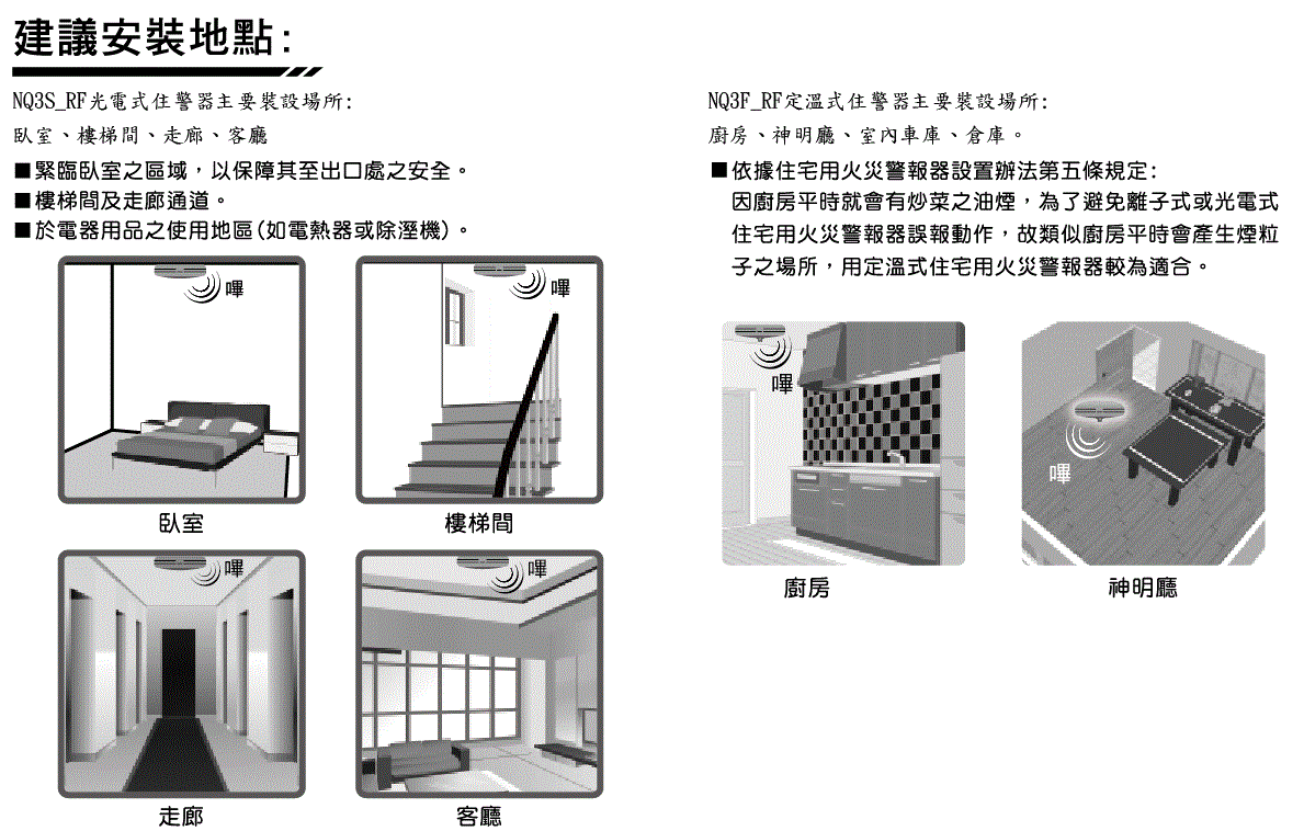 (廚房請使用定溫式住宅用火災警報器)
