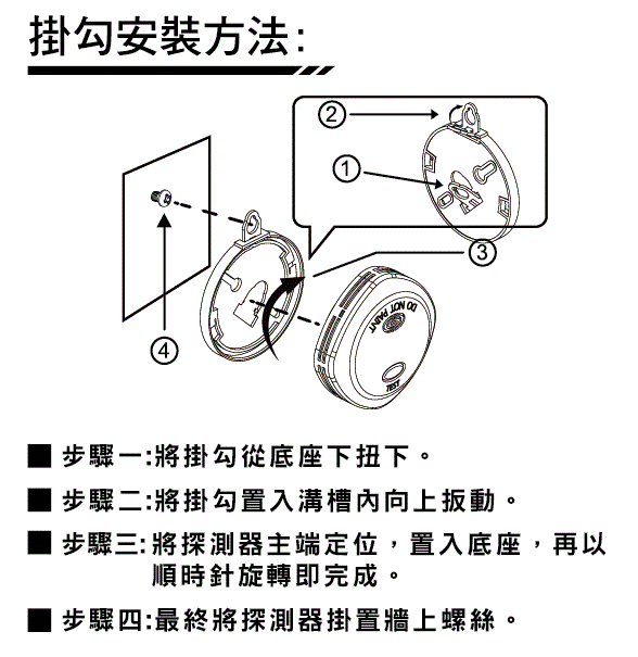 - 具有智慧型自我檢知功能,內含低電壓警報、異常警報、積塵警報及干擾警報等功能。