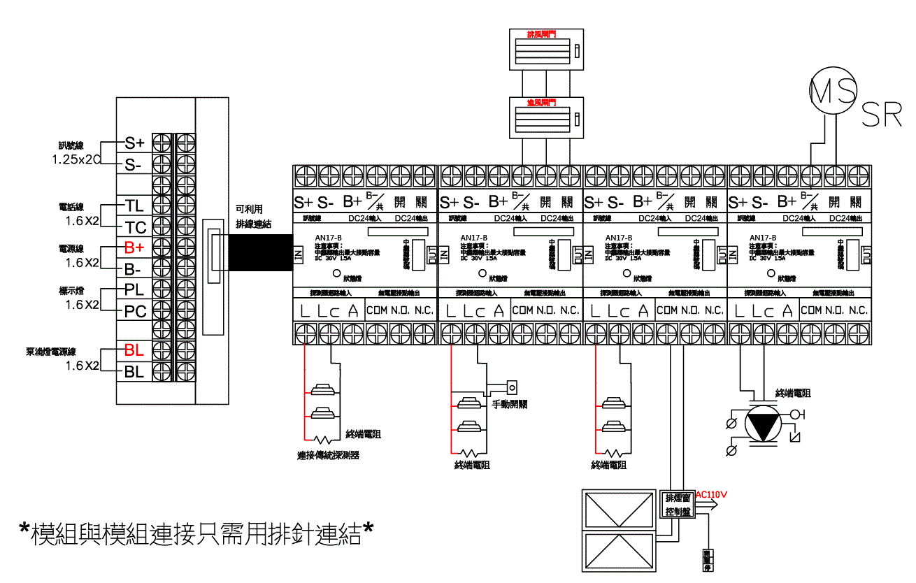 | 輸出接點/負載 | 1 in 2 out COM、NO、NC無電壓接點及 DC24V共開關輸出(可搭配連結模組) |